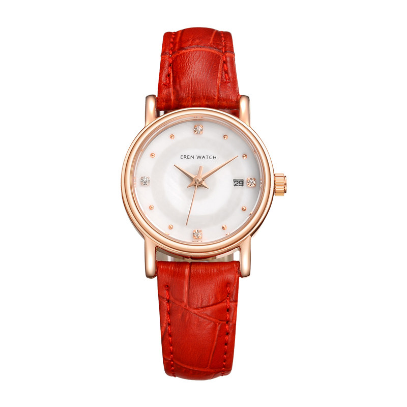 Ellen Leather Band Watch Women's Fashion Casual Waterproof Women's Watch Small Dial Simple Diamond-studded Calendar Watch