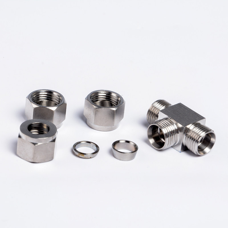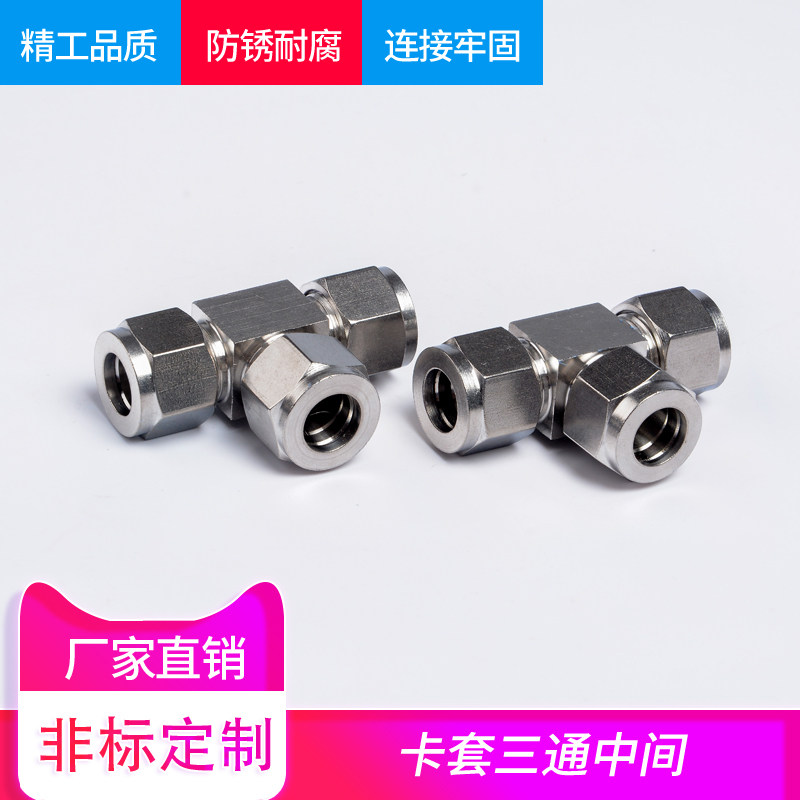304 316 stainless steel card sleeve three - way intermediate joint T - card set T - type instrument gas source copper pipe equal diameter 8