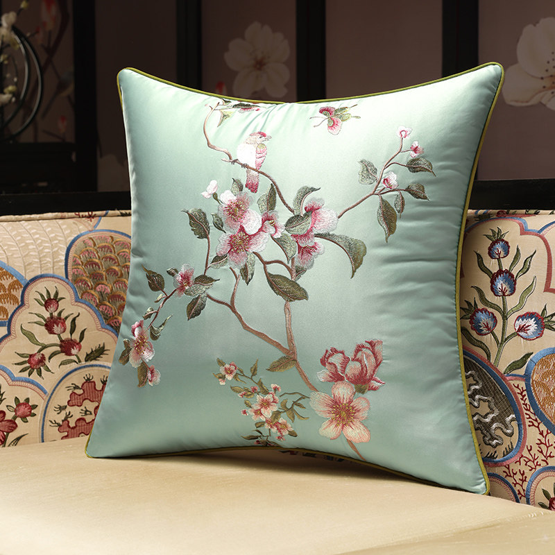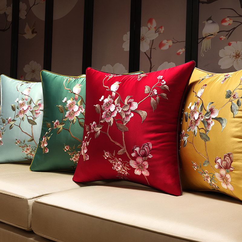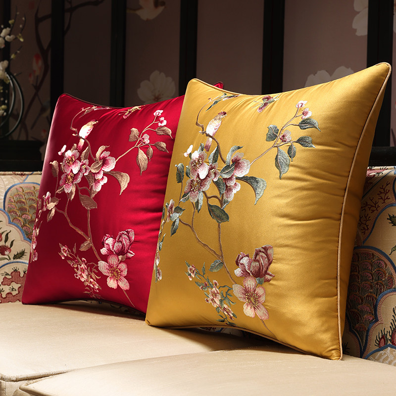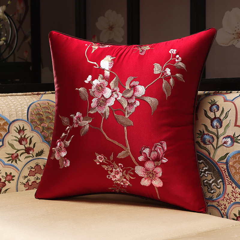 New Chinese Cuddle Pillow Red Wood Sofa Cushions China Wind Living Room Embroidery Leaning Rest Solid Wood Chair Waist Pillow Custom Cover