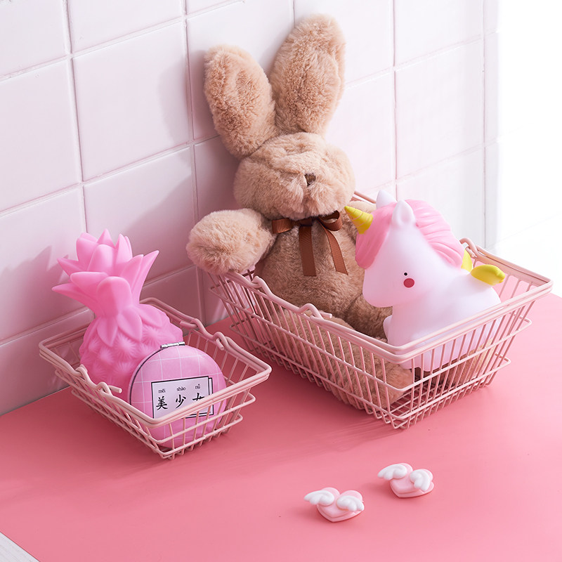 Cute Day Ensemble Pink Teenage Girl Hearts Iron Art Mini Shopping Basket Containing Basket Cosmetics Contained Shopping and Ins