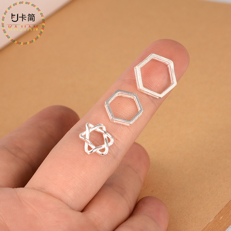 Card Jane 925 silver small accessories bead ring hexagonal hexagonal star bracelet necklace earrings diy silver jewelry material