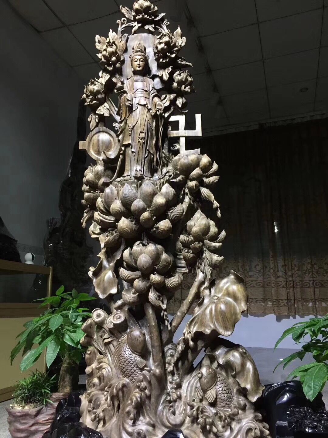 Golden Silk Nanmu Wood Carving small Ye Zhennan Ruyi Guanyin Swaying Pieces Uki Wood Animal Craft Gift Swaying to the Sinned Wood Root Carving