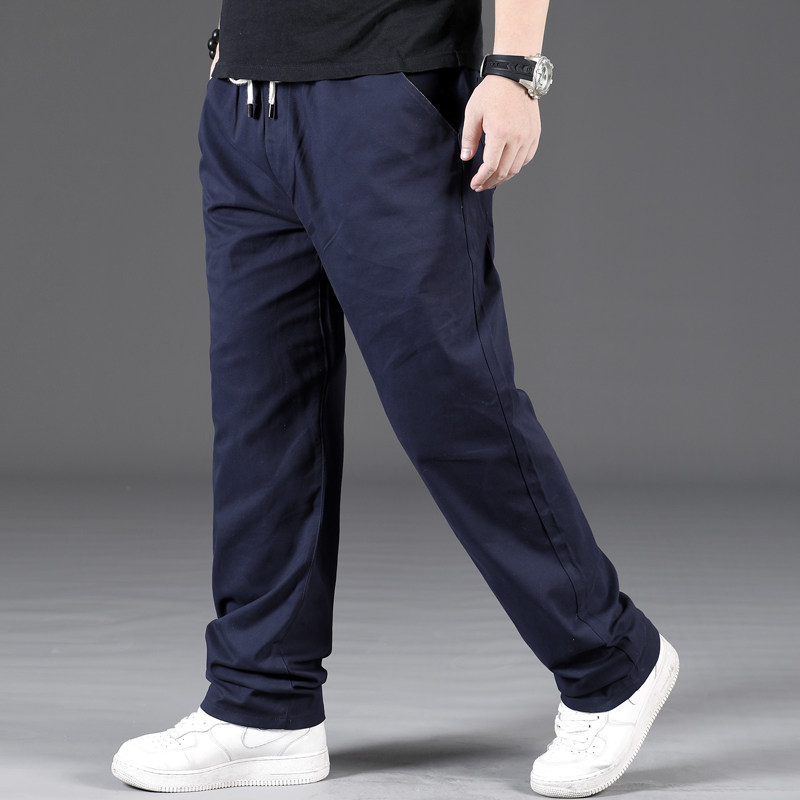 Summer Thin Section Casual Pants Male Gats Plus Size Relaxation Straight Cylinder Fatter Fat Guy Spring Autumn Money Pure Cotton Elastic Long Pants