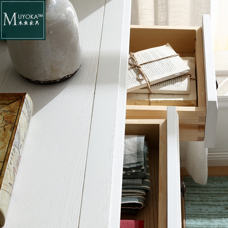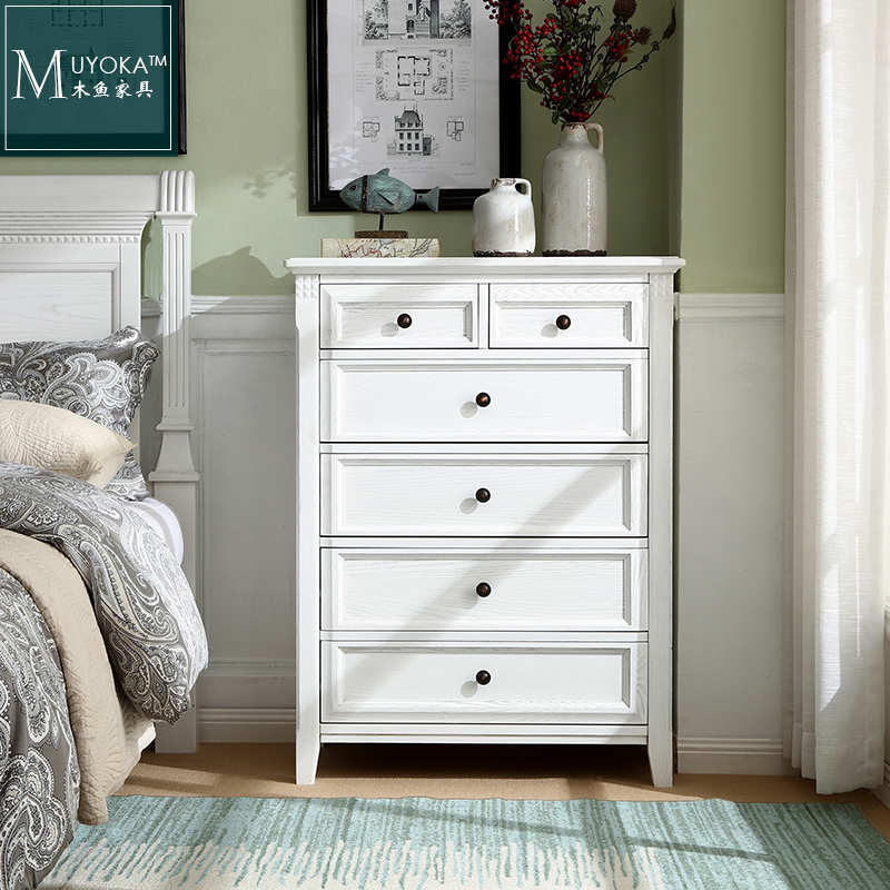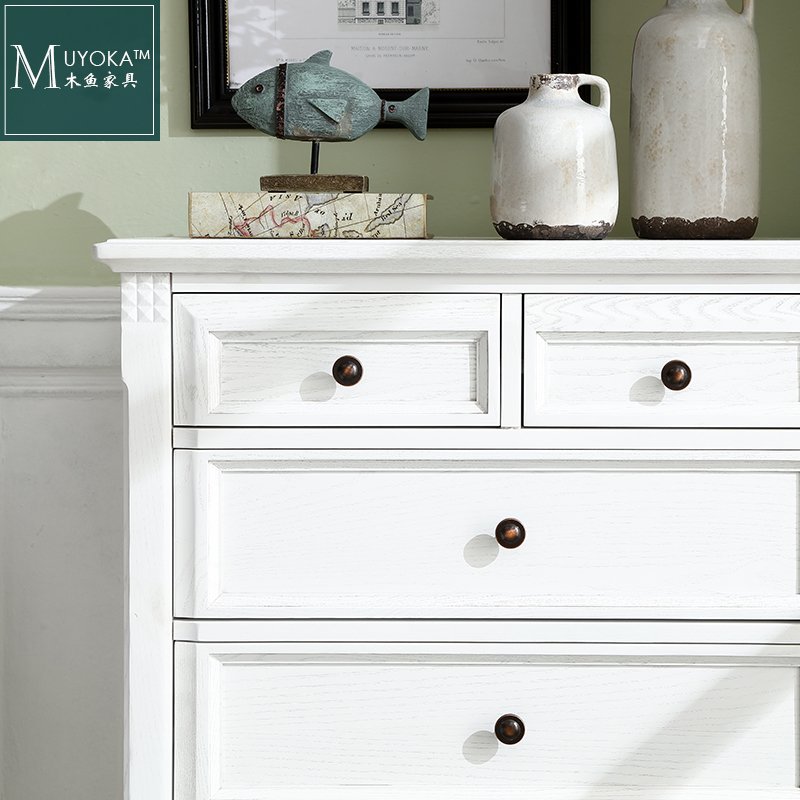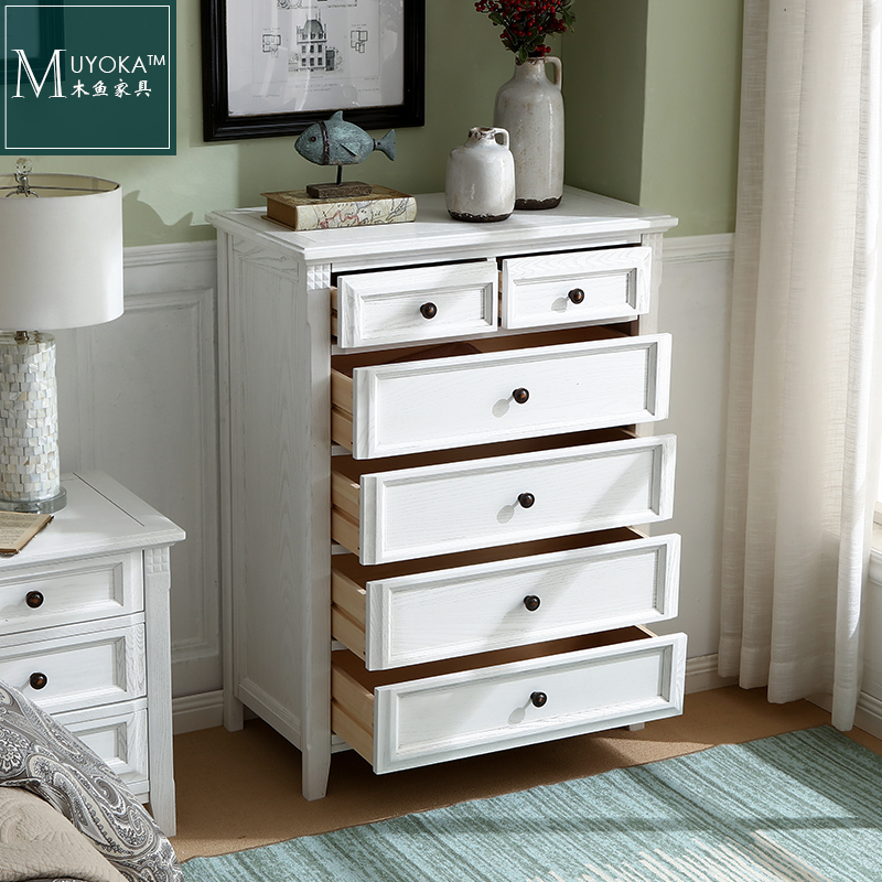 American countryside white wax wood solid wood six bucket cabinet bedroom lockers simple and white made old drawer containing bucket cabinet-Taobao