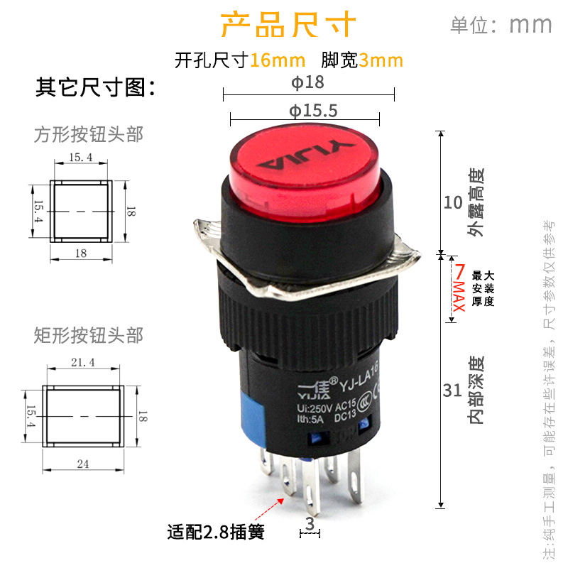 Self-locking button with light LA16-11DNZS 22DNZS Y F J 16mm start stop small button CE 3C