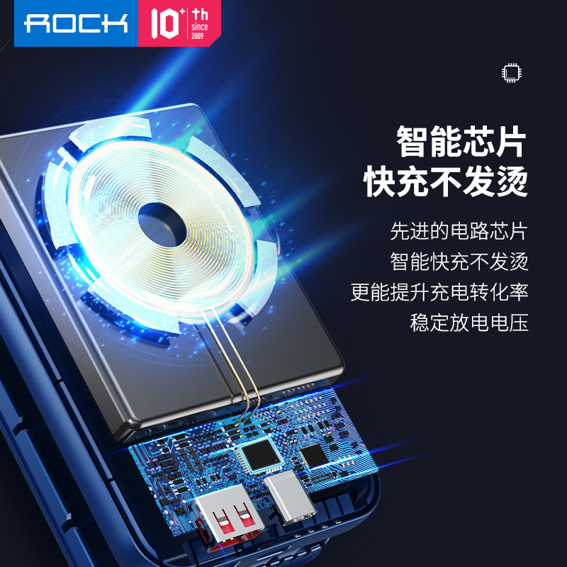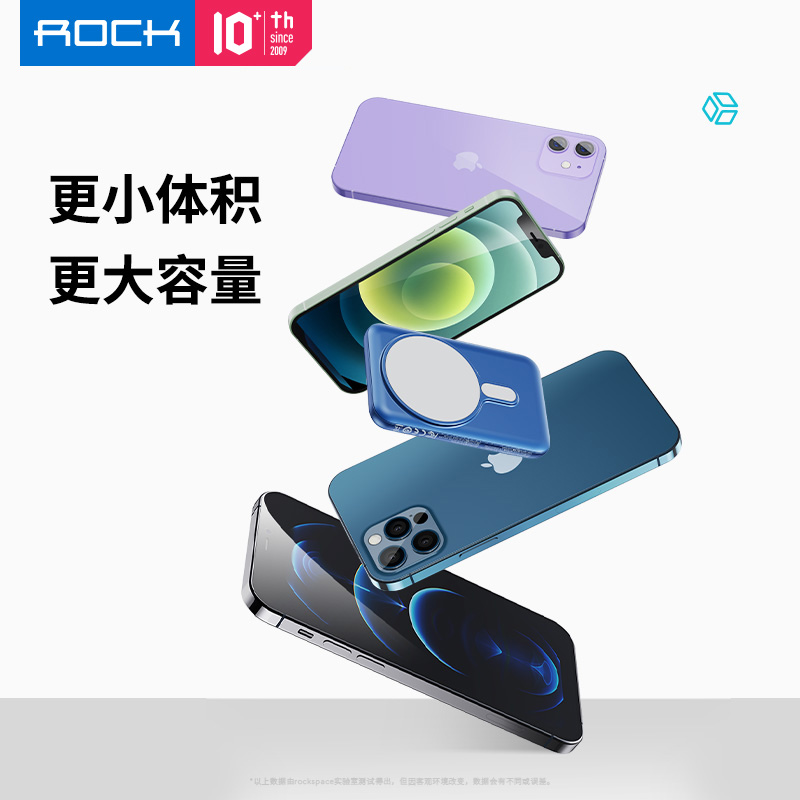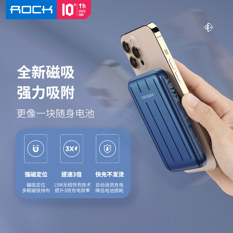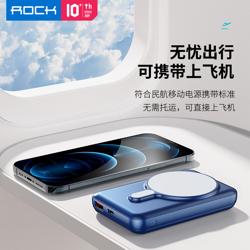 ROCK mobile charging ultra-thin compact portable wireless mini mobile phone mobile power supply light and thin magsafe magnetic fast charging Apple special aircraft large high-end thin Huawei Xiaomi