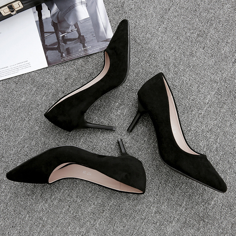 High Heel Shoes Woman Fine Heel 2022 Spring Autumn Season New Black Pointed Suede Professional OL Interview Positive Dress Working Shoes