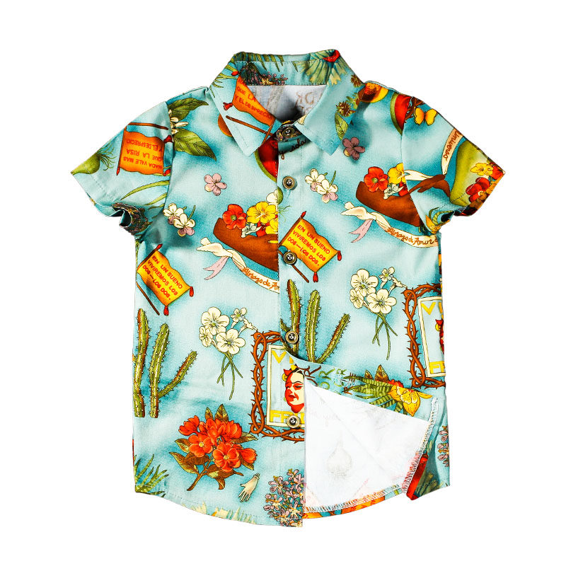 Boy shirt 2022 Summer Child retro Short sleeves Shirt Inlenge Daily Printed Shirt Personality Tide Man