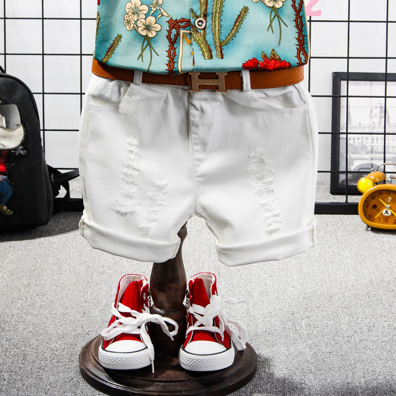 Pattern Shirt Spot White Long Pants Spot Suit Spot Pure Cotton Patterned Short Sleeve Shirt White Shorts Deliver Strap Handsome Short Sleeve Suit