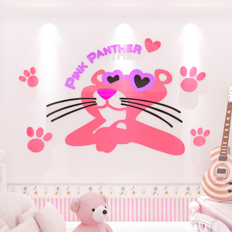 Pink Panther net red bedroom room layout ins wind girl heart girl bedside decoration acrylic wall stickers