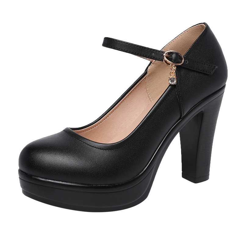 Round Head Genuine Leather Waterproof Bench Coarse Heel Thick Base Bag Shoes White Large Size High Heel Qipao Model Walking Show Shoes Female Performance Shoes
