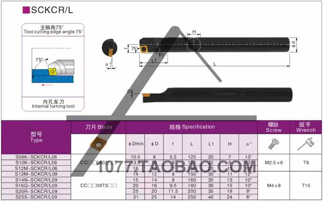 Numerical control knife lever 75-degree inner bore boring knife lever S08K 10K 12M 20R 20R L06 L06 09-Taobao