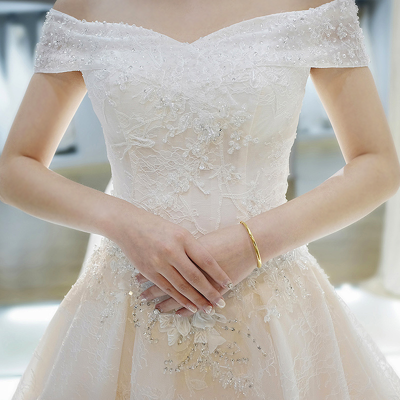 French word shoulder light main wedding dress 2021 new temperament bride simple atmosphere trailing small man out of the yarn woman