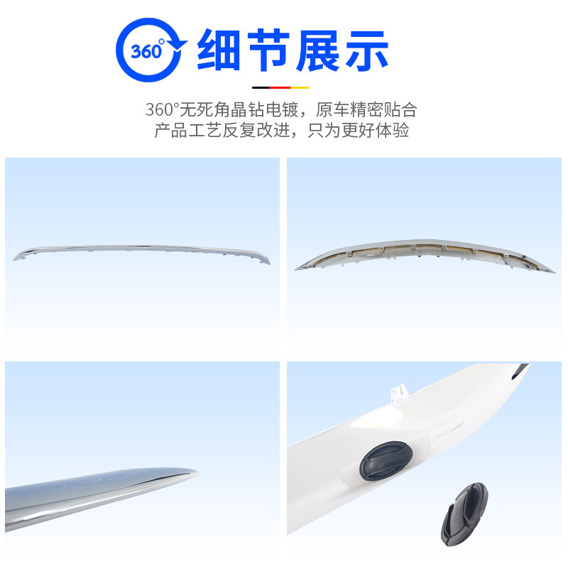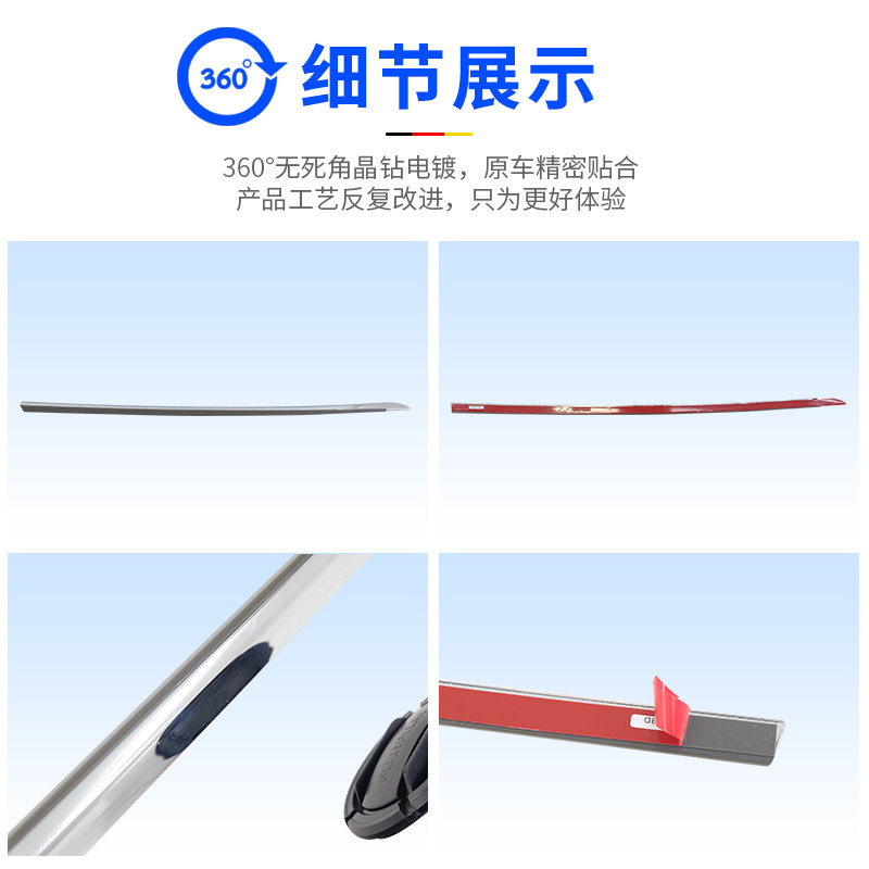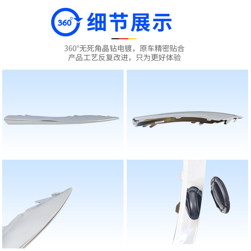 Driver's side -- left front fog light bright strip Co-driver's side -- right front fog light bright strip in the front bar Door light strip (with package)