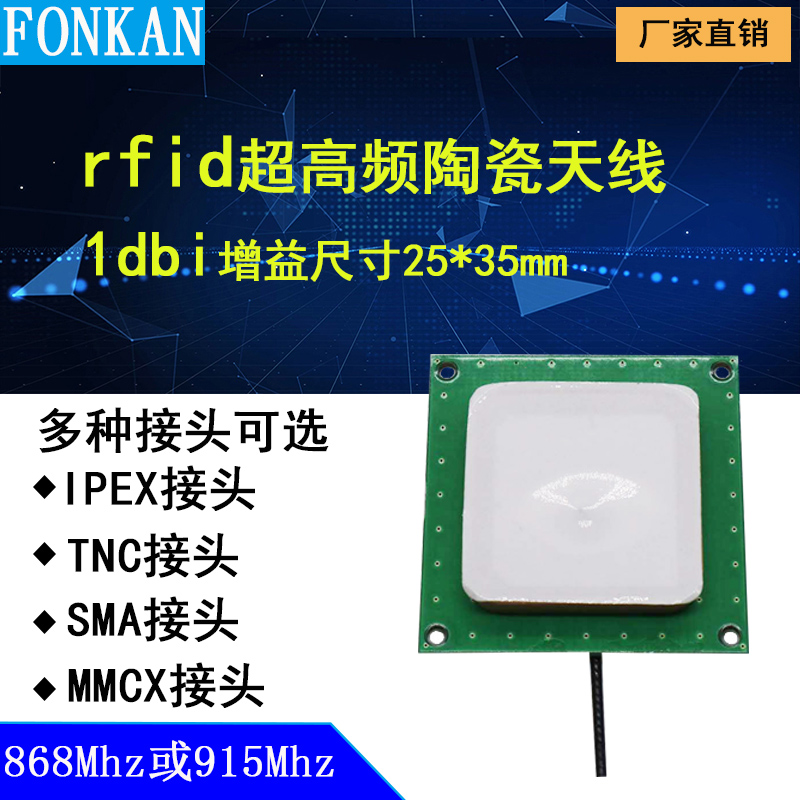 915 inner 25 outer 35 small size UHF UHF RFID antenna PCB ceramic single feed point 25*25 antenna ldbi