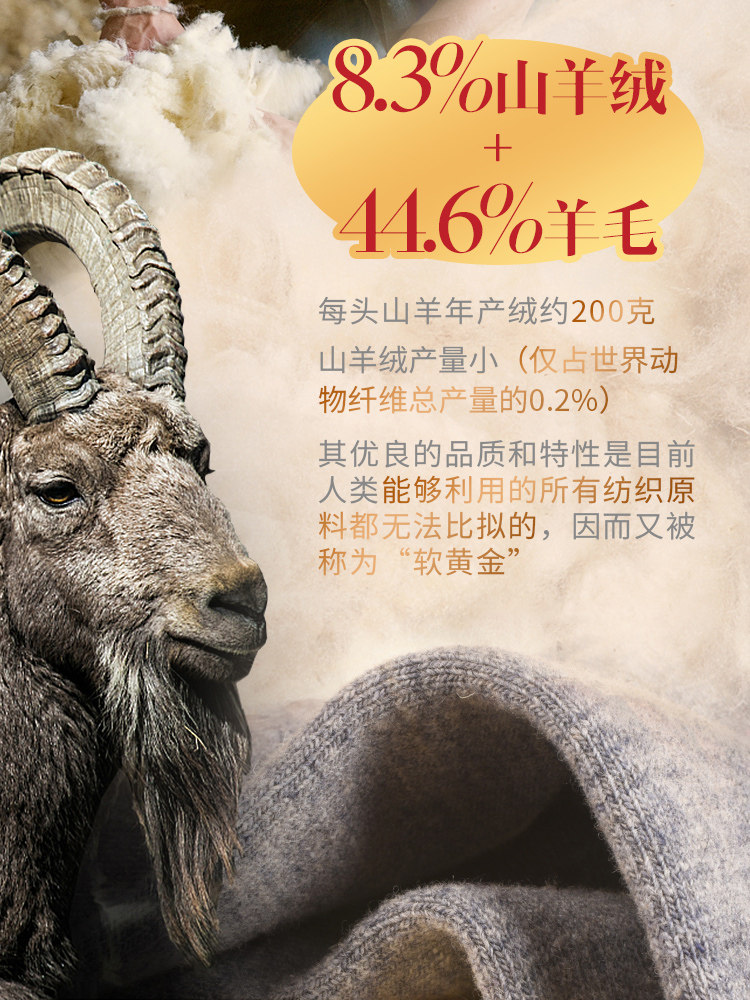 Wool 44 6% polyamide fiber (nylon) 21 9% polyester 18 18 6% Mountain cashmere (cashmere) 8 3% Other 6 6%