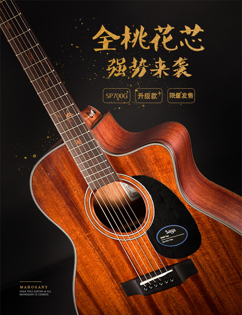 SagaP700G upgrade mahogany veneer folk acoustic guitar beginner students male and female beginner veneer