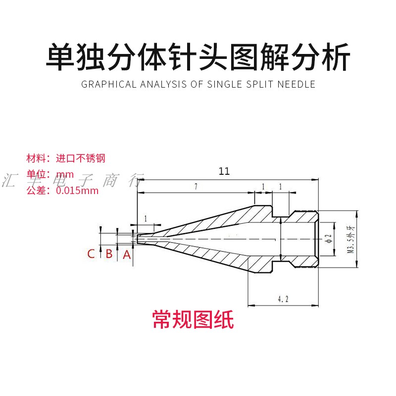 Single-mouth high precision two-piece base double thread high precision two-piece base bayonet high precision two-piece base (copper degree nickel) lengthened mouth two-piece needle 0 4MM lengthened mouth two-piece needle 0 6MM