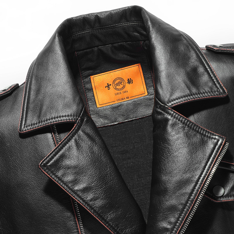 Snow leopard Haining autumn motorcycle models first layer cowhide leather leather clothing Men's short trendy leather jacket slim single-layer leather jacket