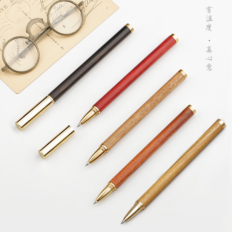 Wooden signature pen Mahogany bookmark set Personality creative metal brass gel pen Student with solid wood pen black pen Black signature water-based pen High-grade business men custom birthday gift