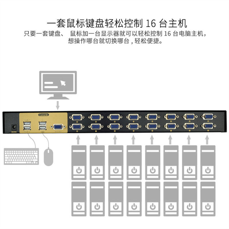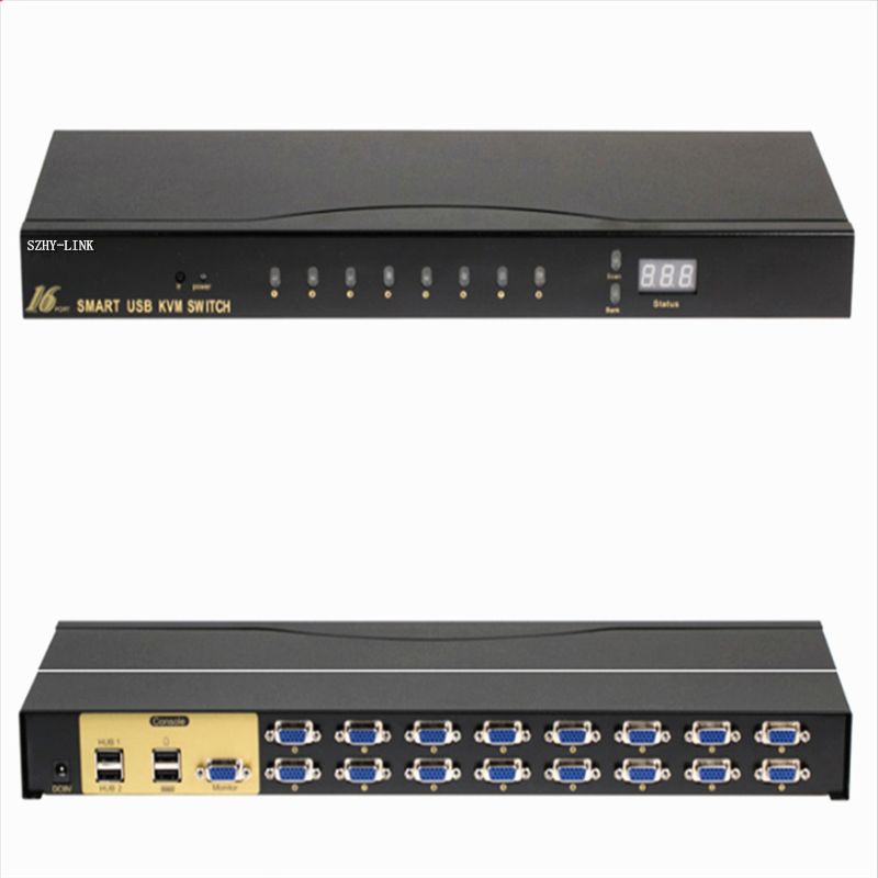 SZHY-LINK 16-port USB VGA KVM switch 16 in 1 out with remote control with HUB video switcher