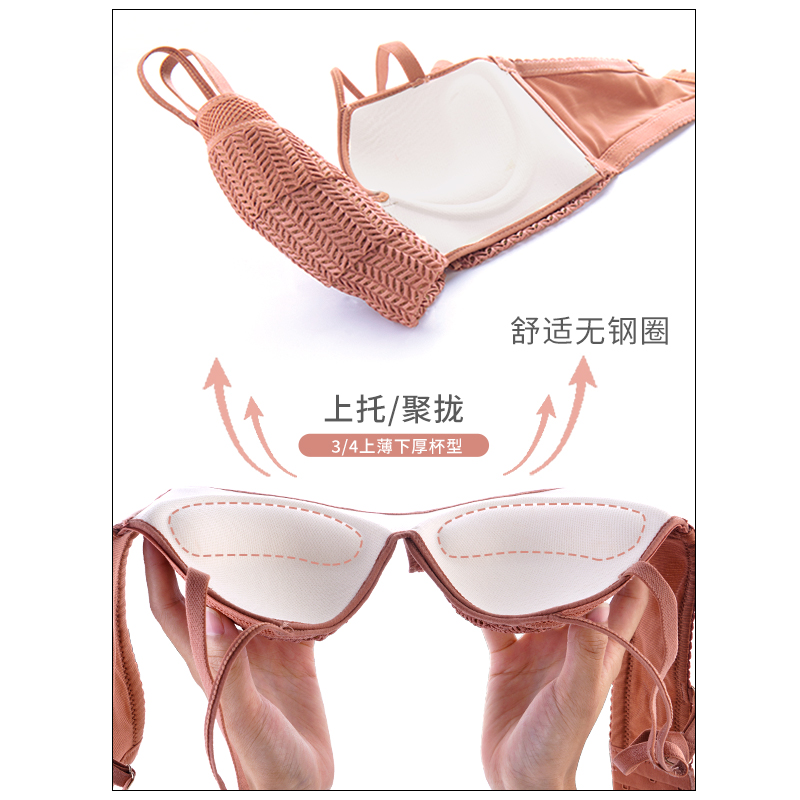 Sexy lace lingerie women's small breasts gathered without steel ring adjusting type collection auxiliary milk thickness bra bra underpants set of women