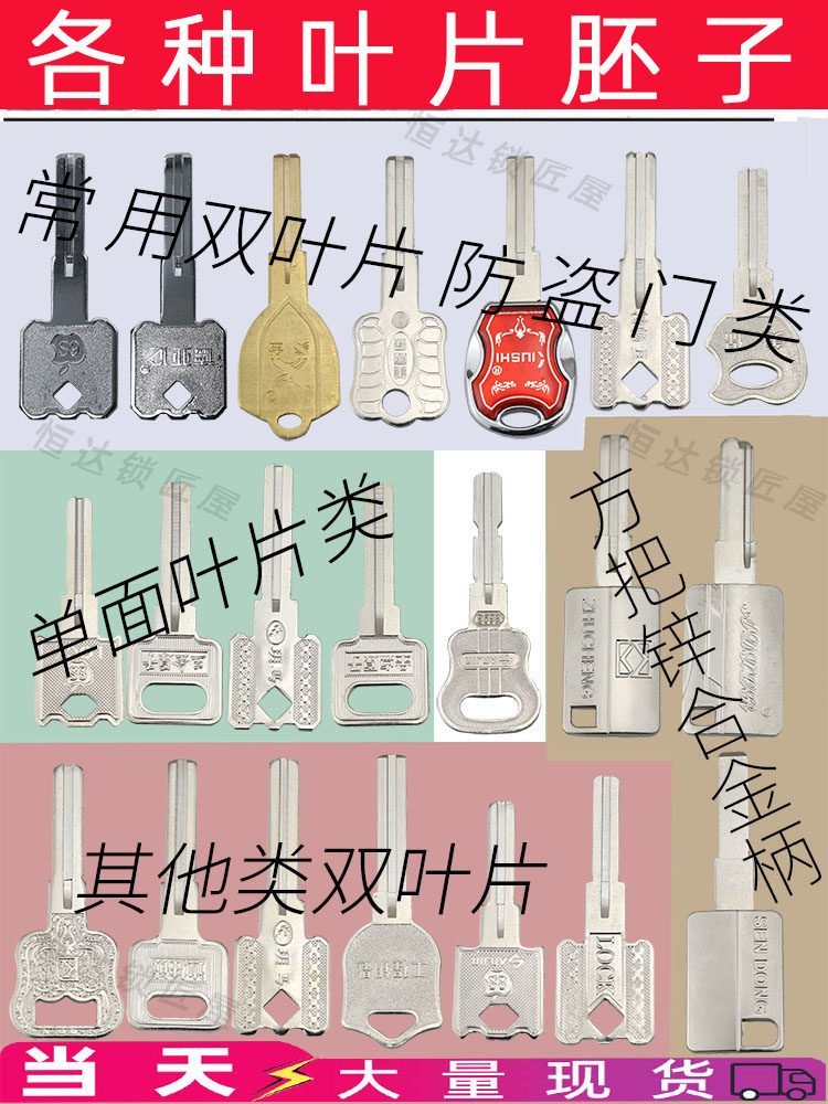 Key embryo super C-class anti-theft door gap apple double-blade inner milling groove plated bright various key blank lock embryo