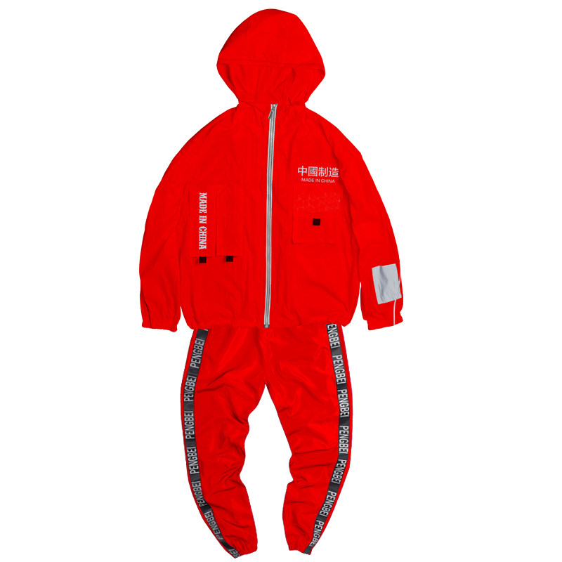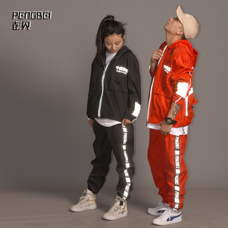 Tide Men's Hat Jacket Tooling Suit 3M reflective sports clothes Costume Street Dance dance Team Custom 029