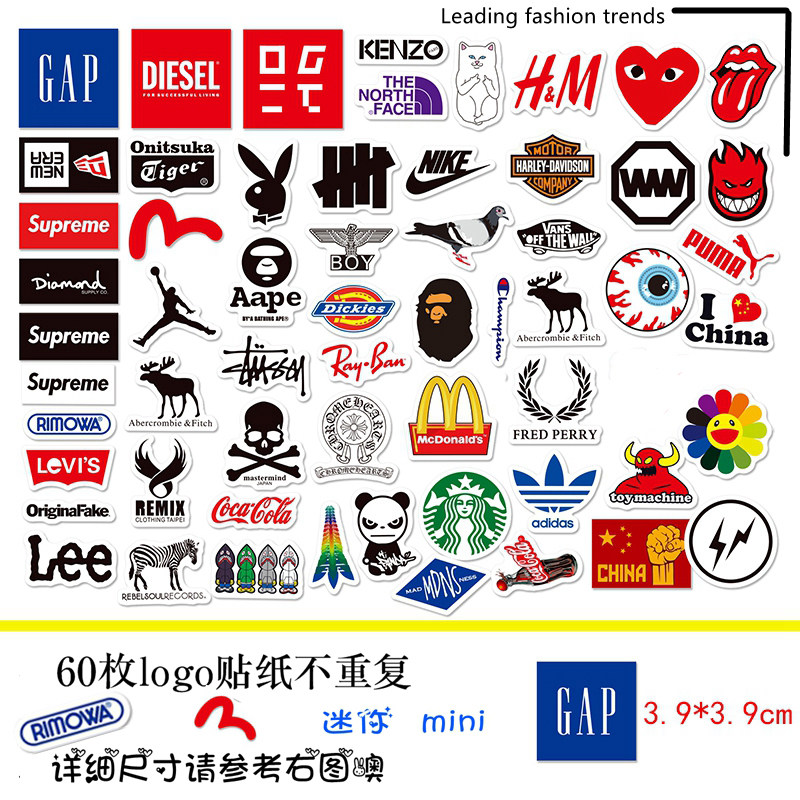 Mini Mini Small Tide Logo Mobile Phone Luggage Personality Flat Shell Guitar Refrigerator Waterproof Sticker