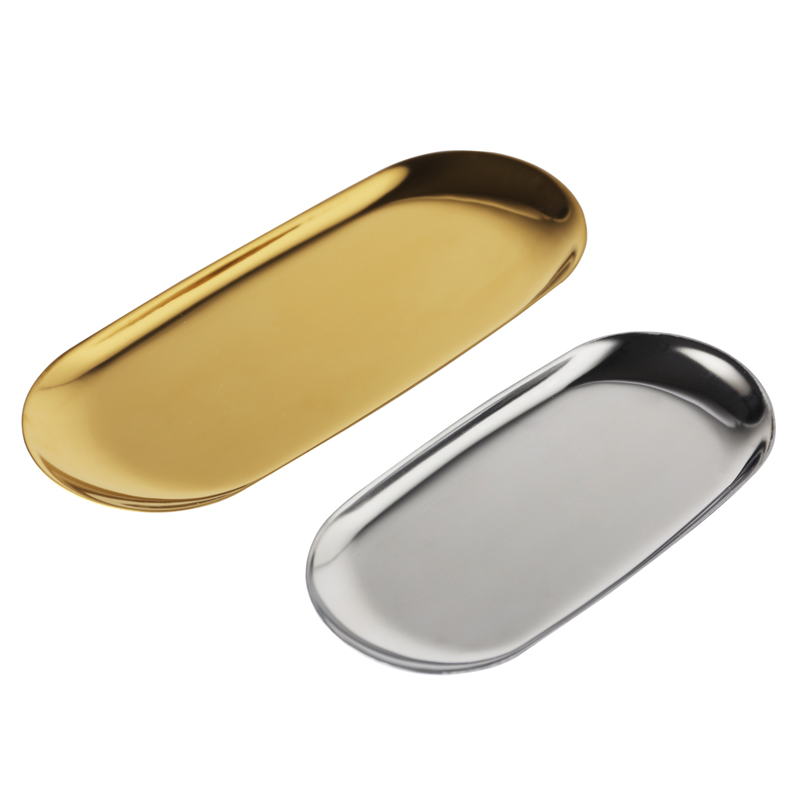 Nordic ins Stainless Steel Gold Oval Jewelry Plate Nordic Home Storage Palette Pastry Cake Plate