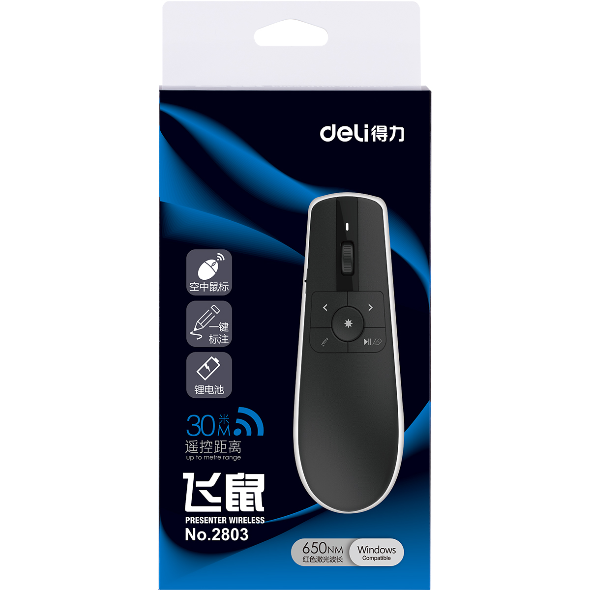 SF free custom logo Deli 2803 flying squirrel PPT projector page turning pen red light 30 meters distance rechargeable air mouse business gift laser page turning pen pointer