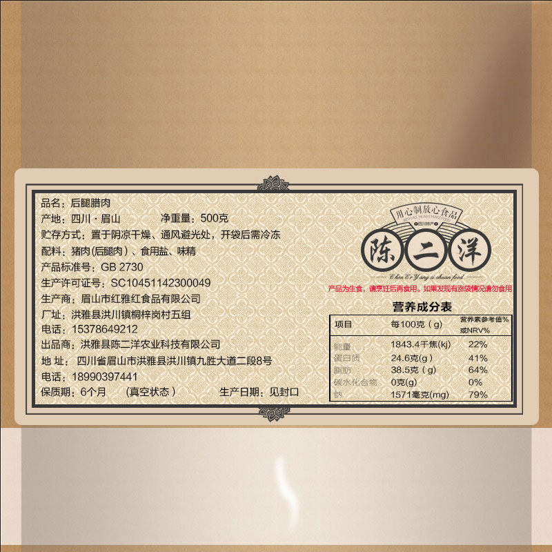 Chen Eryang Zhengzong Sichuan after Sichuan leg Rameat to be produced 3 catties Smoked cured meat salted meat farmhouse homemade 500g * 3