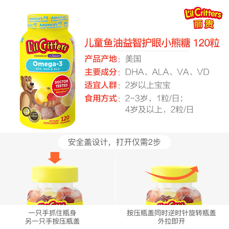 Ligui lilcritters import small bear soft sugar children baby deep-sea dha fish oil 120 grain