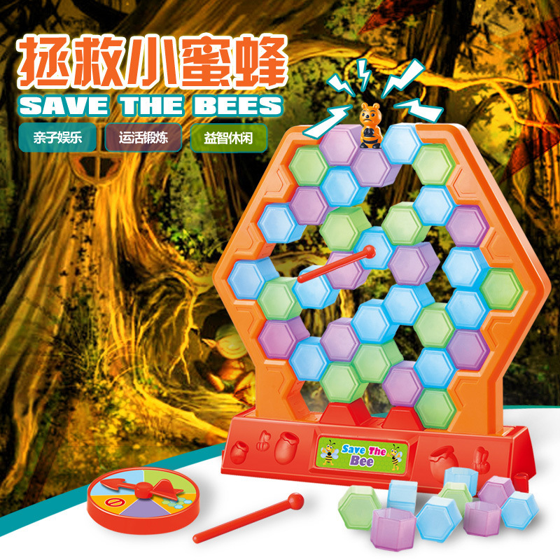 Save the little bee, tear down the wall game, children's puzzle board game, honeycomb building block toy, parent-child interactive game