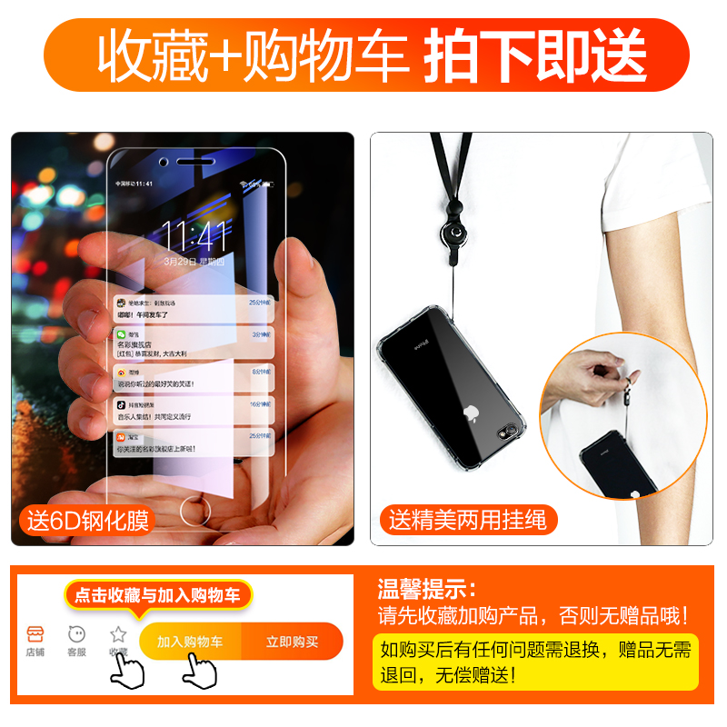 Special Offer Yellow Package Indemnity (Collection Cart) Free Tempered Film Lanyard Apple 7 8 (Transparent) Airbag Fall Protection☆ Higher than Lens Protection Apple 7 8 (Transparent) Airbag Fall Protection☆ Height