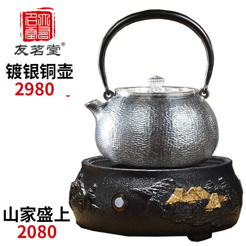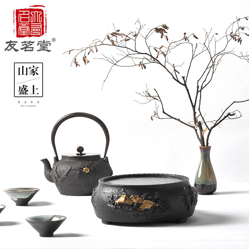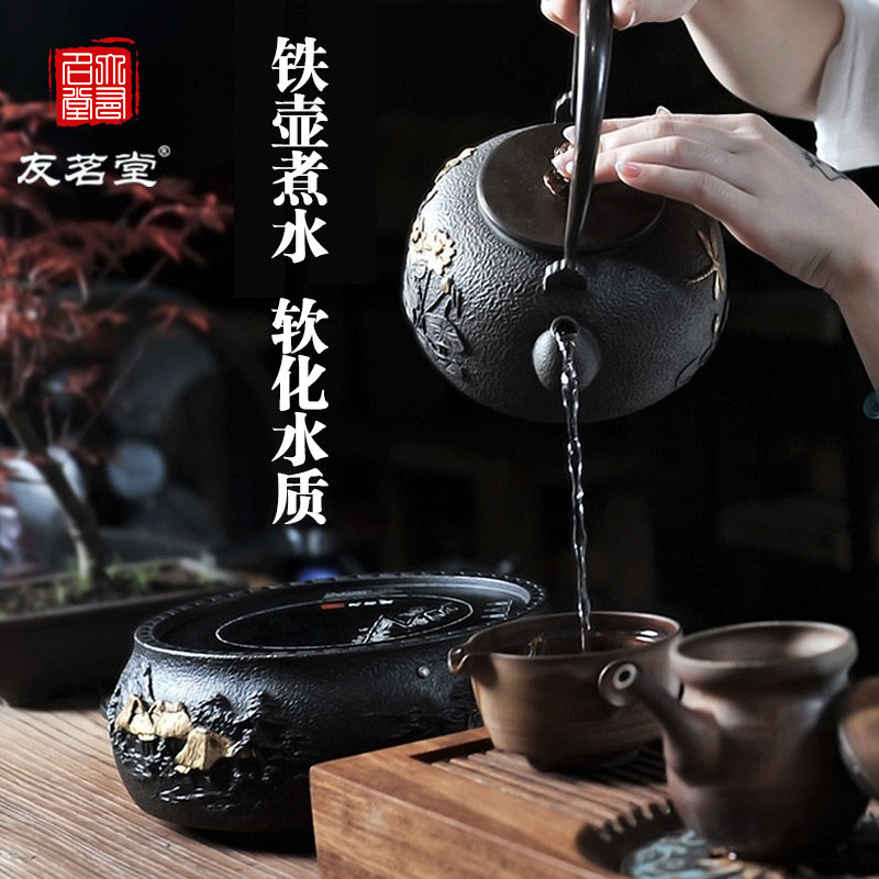 Yu Tea Black Crystal Stove Tea Kit Casting Iron Kettle Silver Tea Kettle Household Iron kettle Copper Boiled Tea Stove