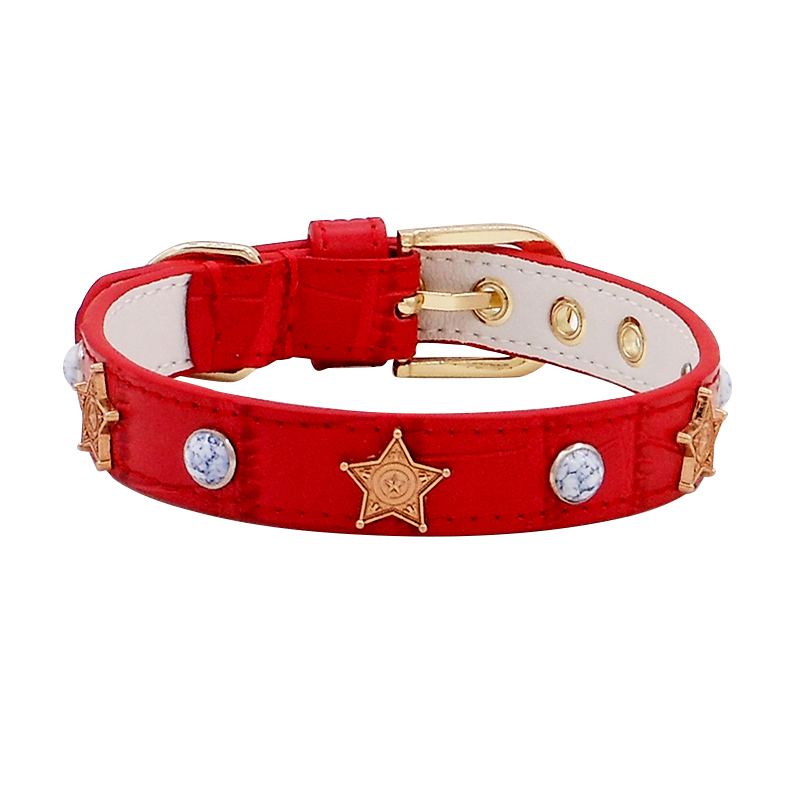 Multicolored optional patterned stars pine stone rivet Achille genuine leather Pet Item Circle teddy Bears neck ring