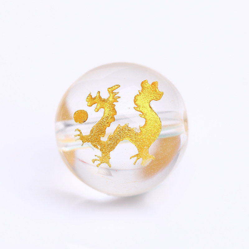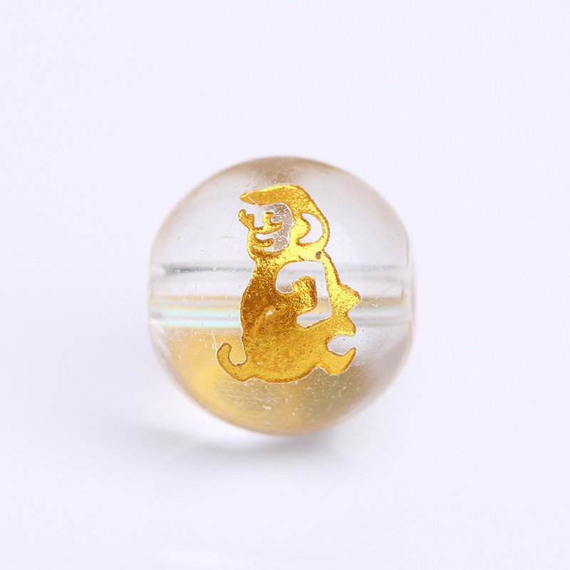 Dingxi white crystal bronzing zodiac beads loose beads DIY jewelry with red rope Year of life genus dog and horse beads