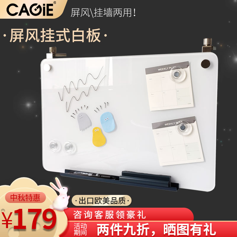 CAGIE ins tempered glass magnetic whiteboard post-it notes message board meeting teaching office kitchen post-it notes screen note board hanging whiteboard simple IKEA wind milk white glass whiteboard drawing board