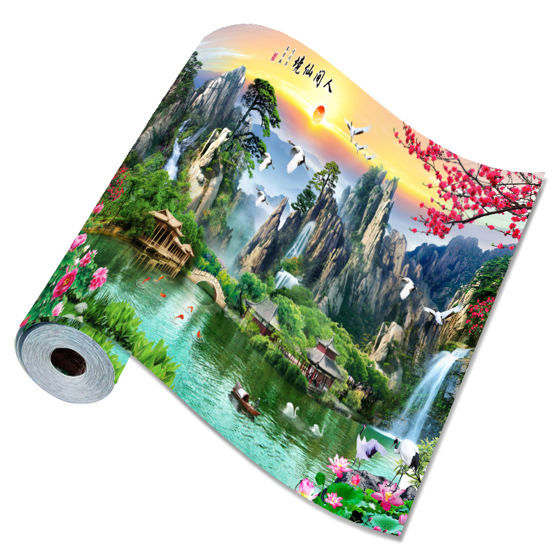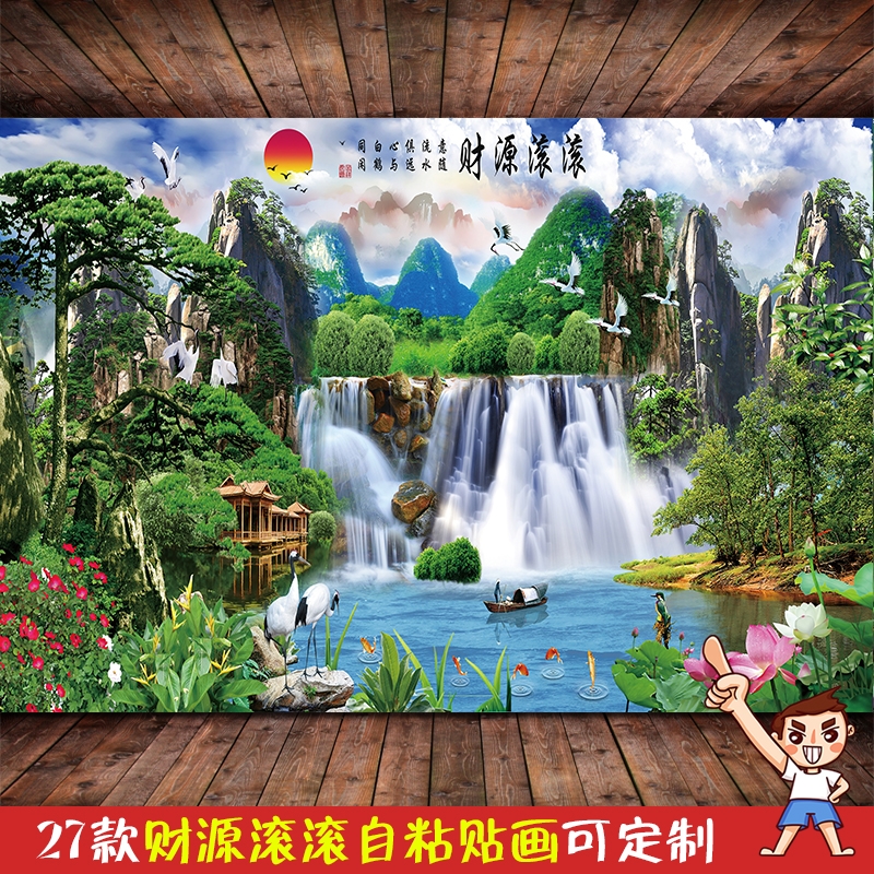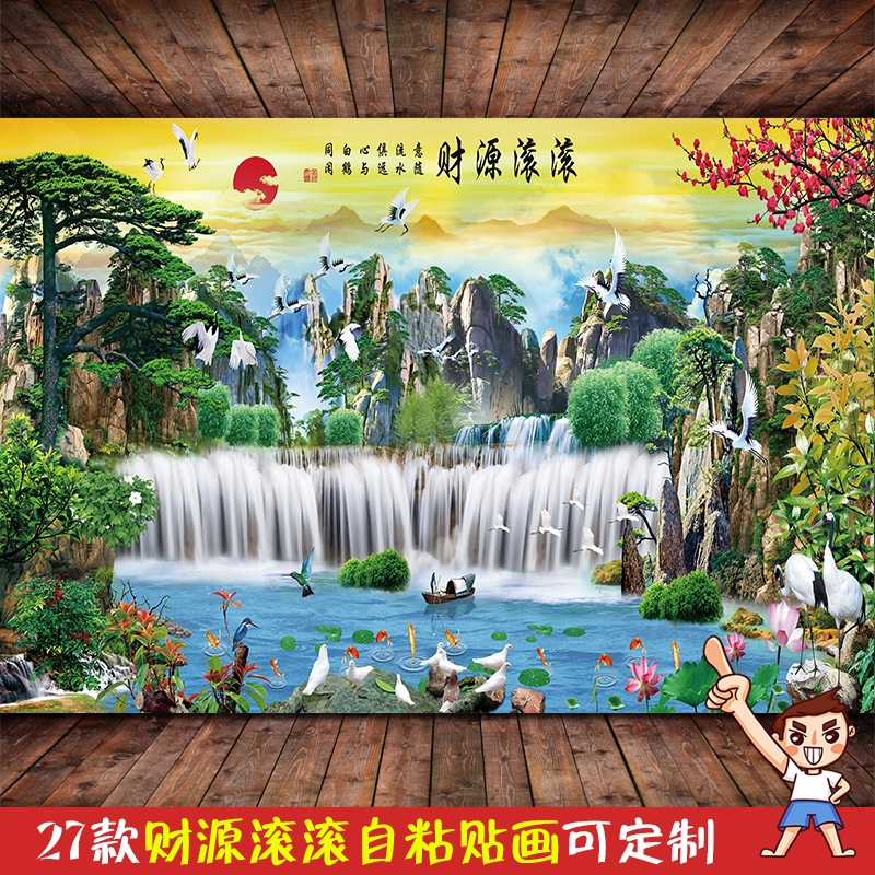 Landscape Painting Stickler Wallpaper Self-Adhesive Wind Landscape Painting Decoration Year Painting Wall Stickup Wall Stickup Drawing Room Sofa Wallpaper