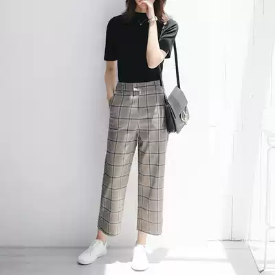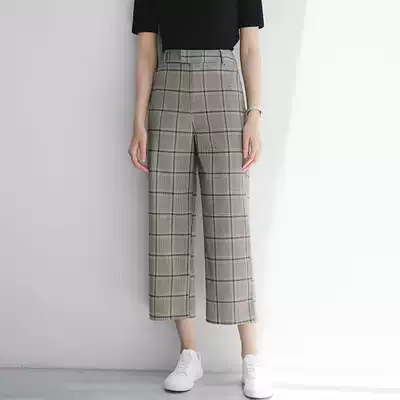 Plaid casual pants women's 2021 autumn new Korean version of thin nine-point pants tide loose straight high waist wide pants