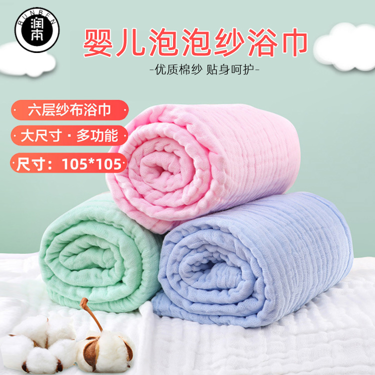 6-layer yarn 105 * 105cm light blue bath towels 6 layers of yarn 105 * 105cm light green bath towels 6 layers of yarn 105 * 105cm light yellow bath towels 6 floors