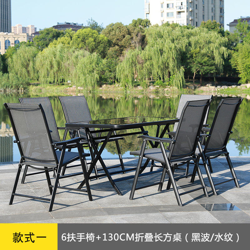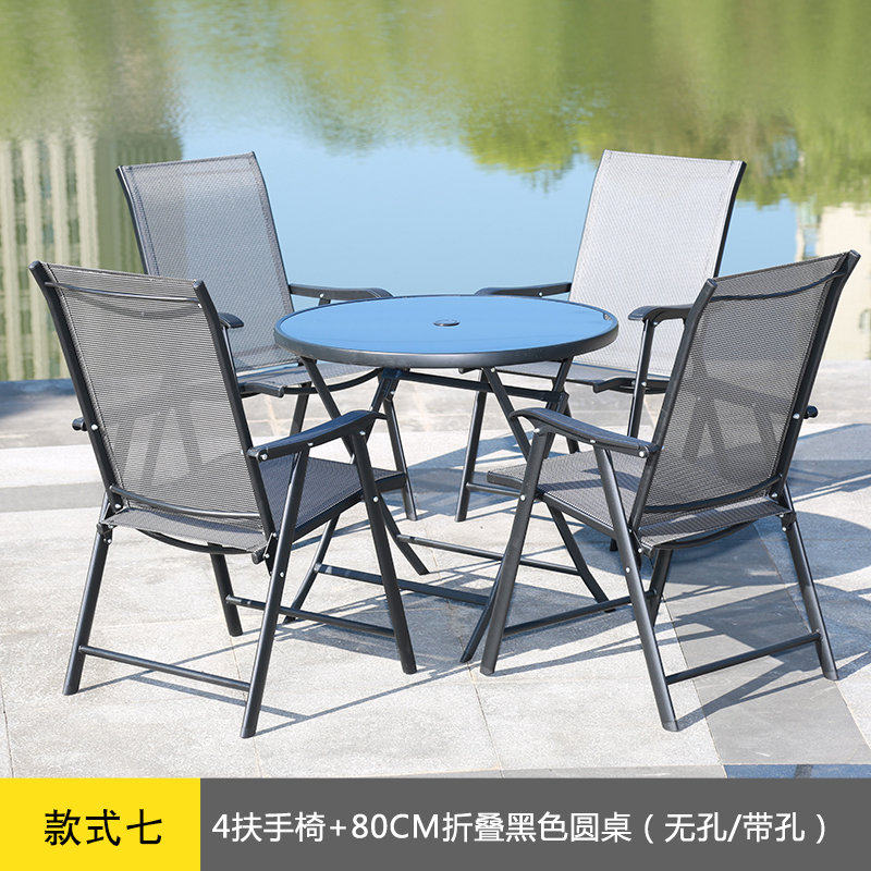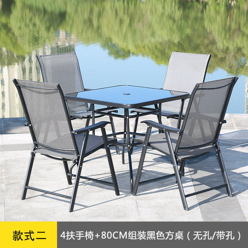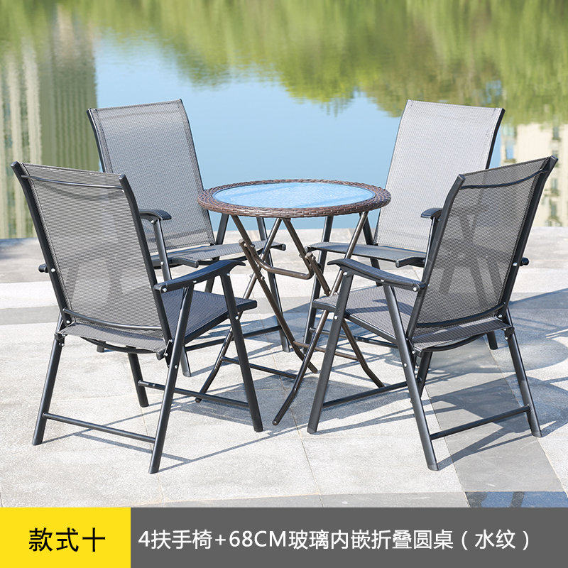 Outdoor balcony cold drink milk tea shop folding table and chair set outdoor light and breathable leisure chair glass table combination