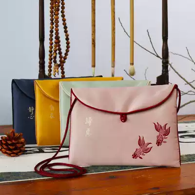 Zen cross bag Chinese embroidery flowers, birds, fish and insect bead buckle design retro cloth bag travel Cross bag side portable belt