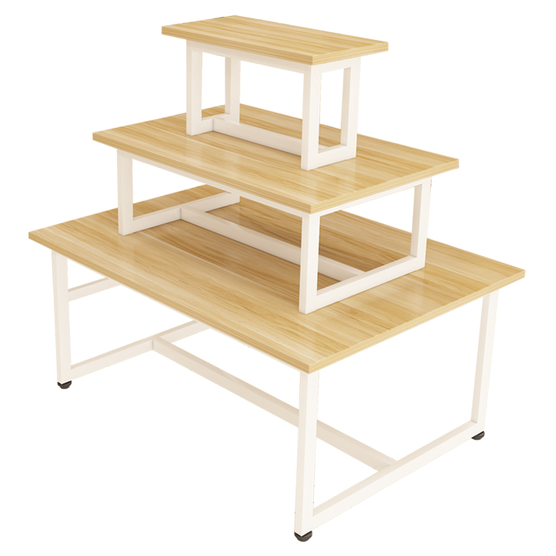 Three-layer flow table white white frame Three-layer flow table light walnut white frame Three-layer flow table white maple white frame Three-layer flow table apple wood white frame Three-layer flow table black and white frame