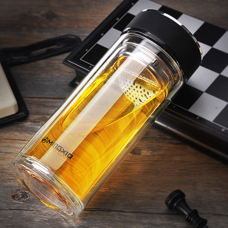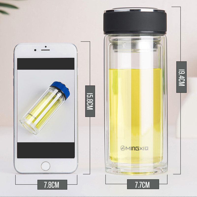 Mingxia double vacuum glass with filter car portable transparent cup home office tea cup large capacity