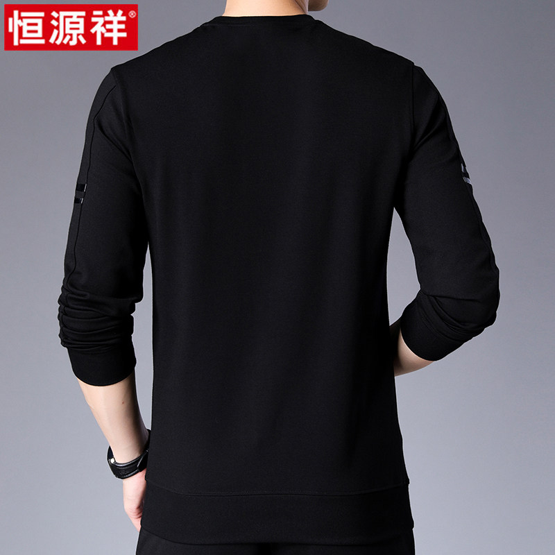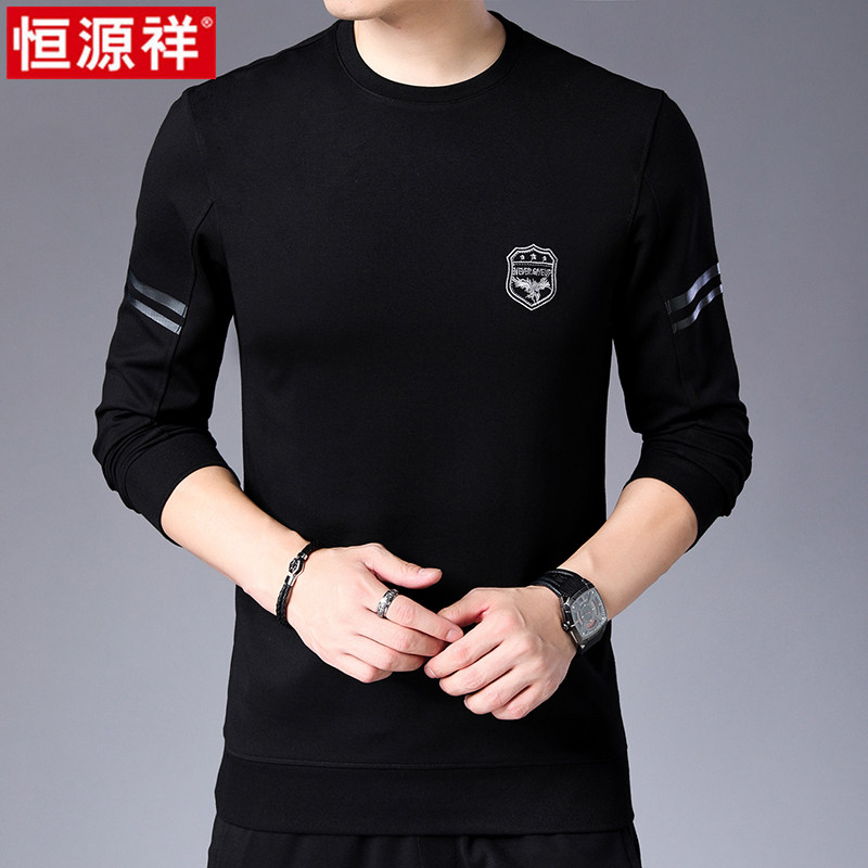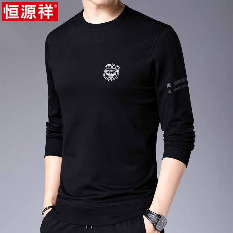 Hengyuanxiang 2021 spring and autumn new men's round neck thick cotton T-thin long-sleeved T-shirt youth solid color inner jacket