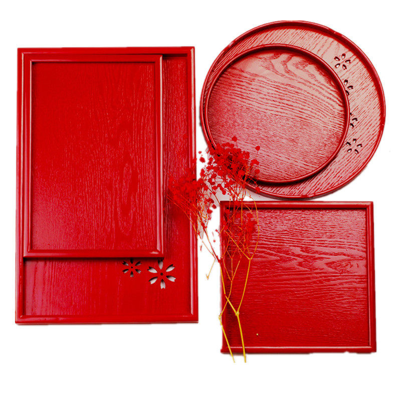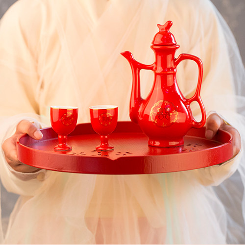 Wedding tray wedding tea tray tea cup hi plate round candy wooden bride wedding toast tea red plate