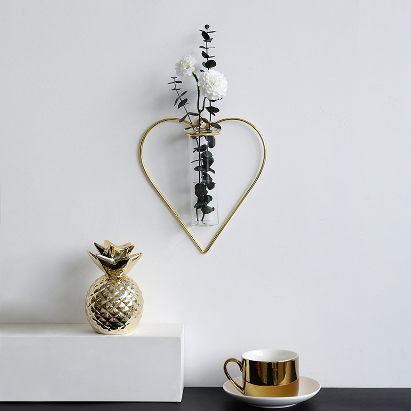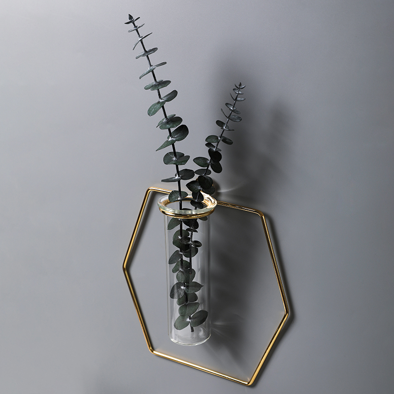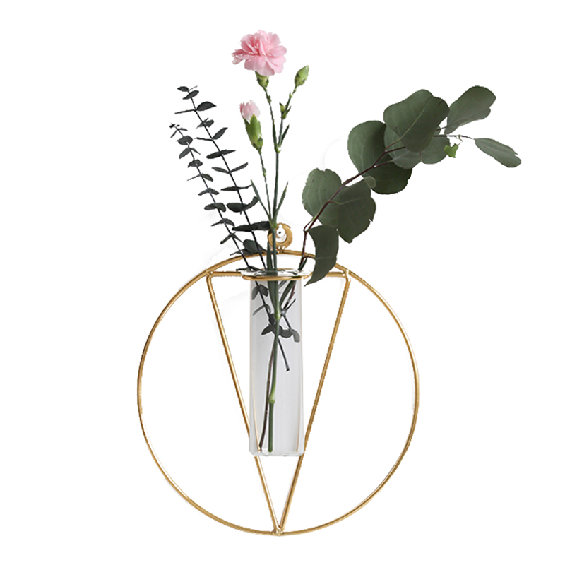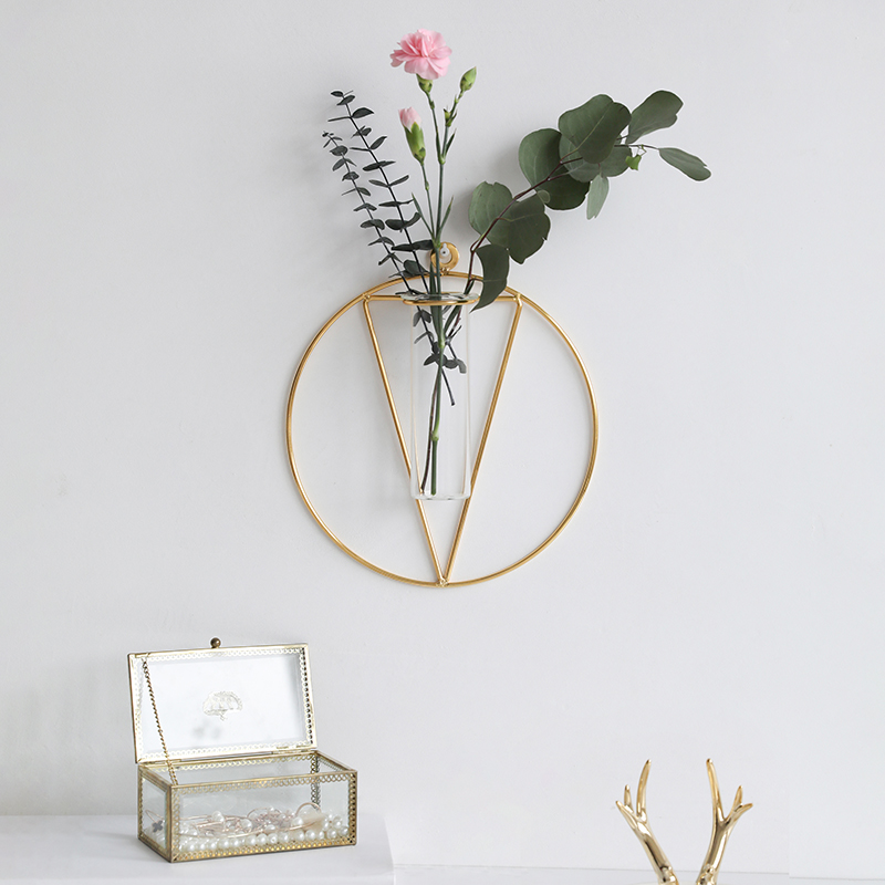 State Life Nordic Wind Golden Wall Hanging Accessories Wall-mounted Vase Hydroponic Background Wall Metal Light Lavish Living-room Bedroom