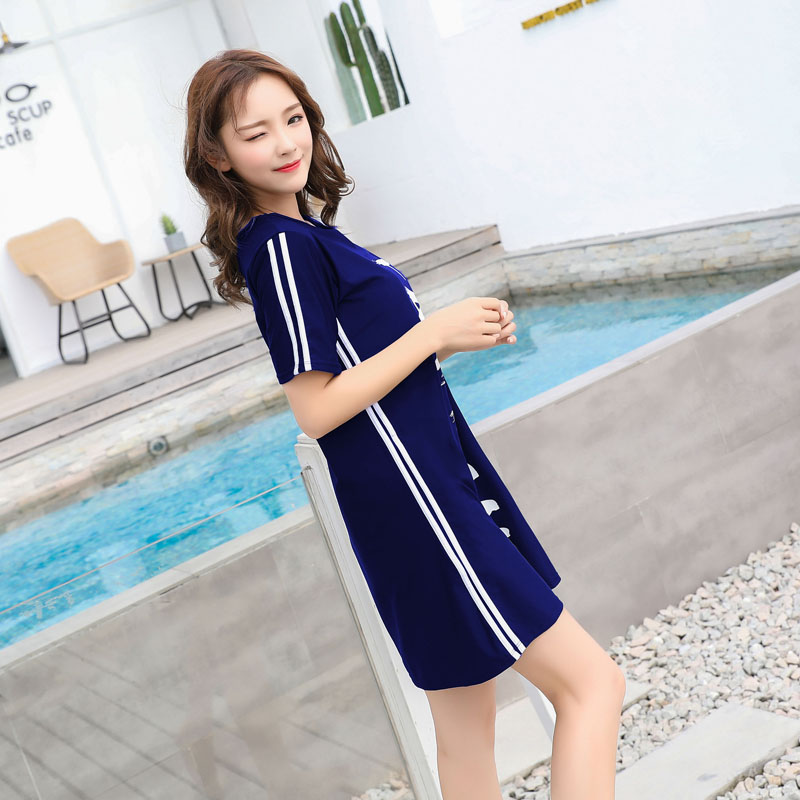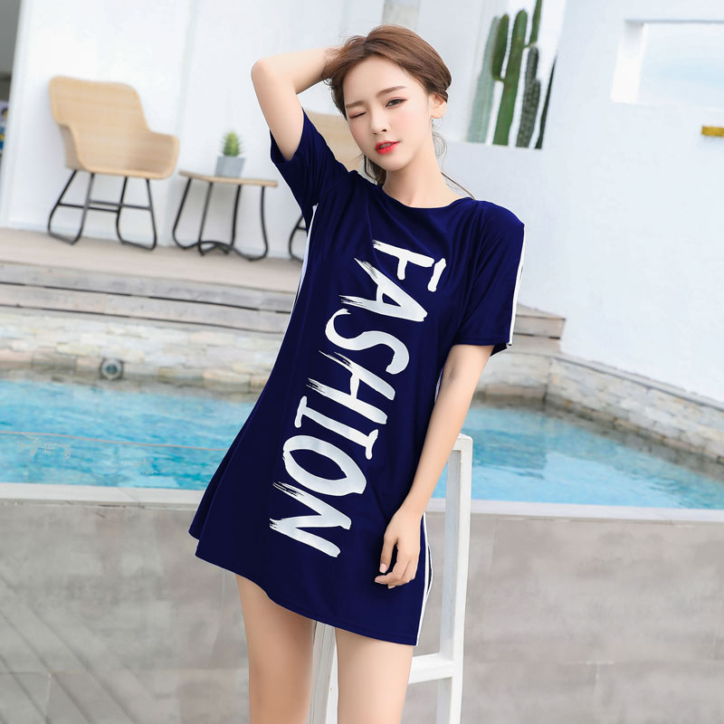 Large size swimsuit female 200 pounds fat mm conservative student long version cover thighs cover belly show thin three-piece set hot spring